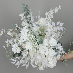 Centro de mesa de flores blancas personalizadas, decoración Artificial, corredor de flores para decoración de boda